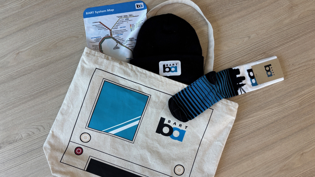 Goodie bag with assortment of SFMTA Muni Merchandise